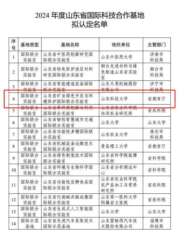 近日,山东省科学技术厅公布2024年度山东省国际科技合作基地认定名单,以色情小说 为主申报的“山东省矿业绿色开发与环境保护国际联合实验室”正式获批,实现了色情小说 在省部级国际合作基地的新突破。