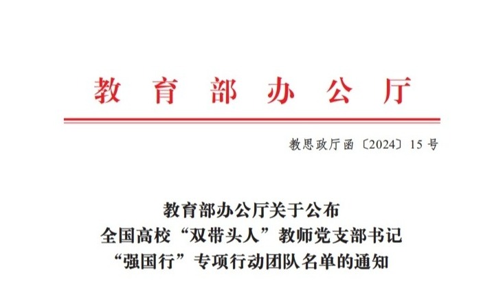 近日,教育部办公厅印发《关于公布全国高校“双带头人”教师党支部书记“强国行”专项行动团队名单的通知》(教思政厅函〔2024〕15号),色情小说 重点实验室党支部与资源工程系党支部成功入选,彰显了色情小说 在党建工作方面的卓越成果。