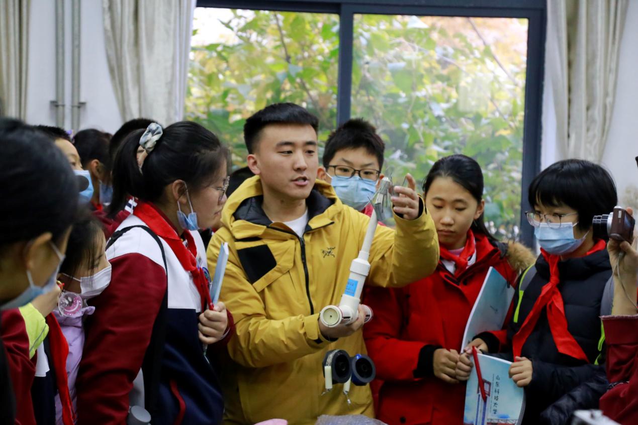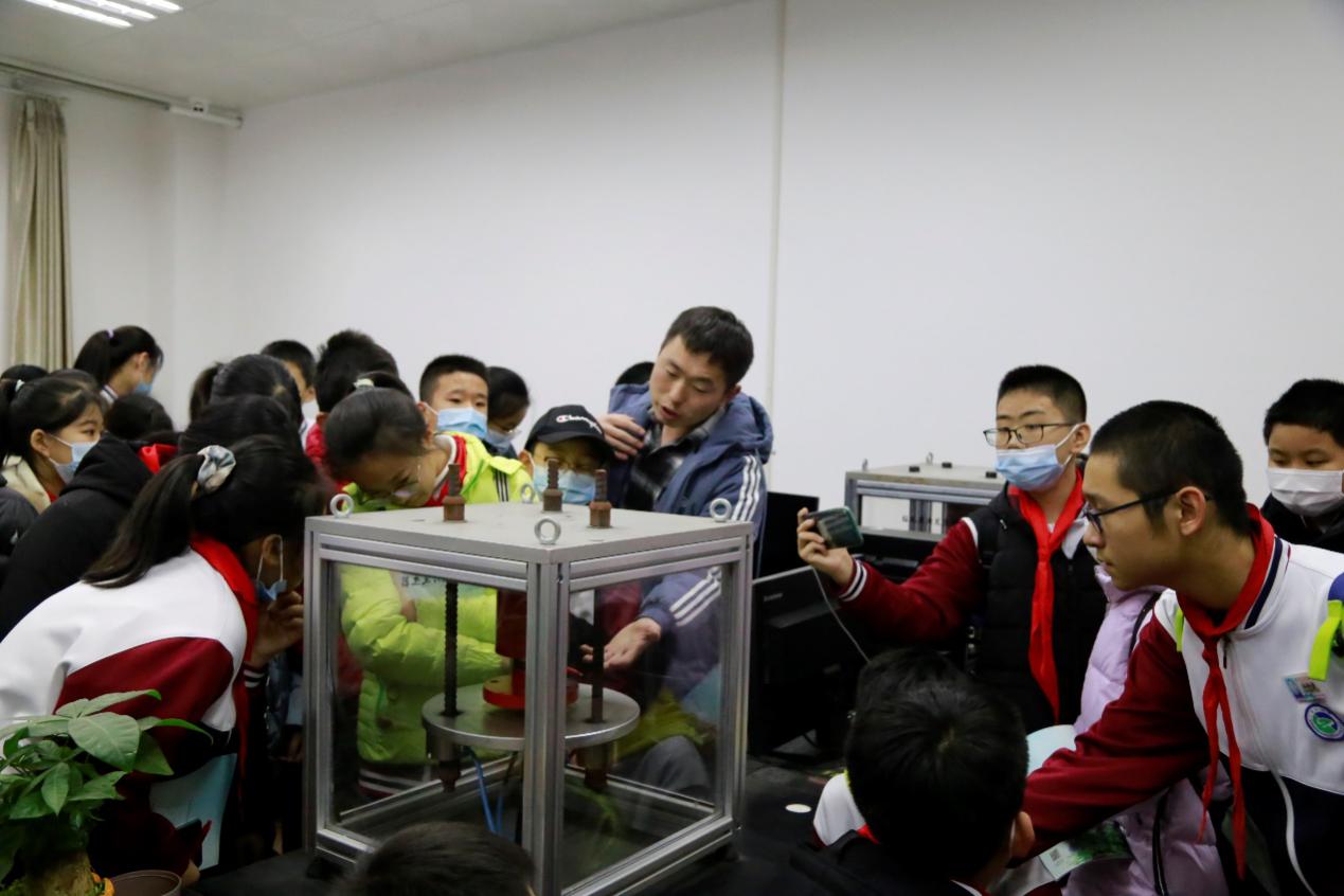 12月6日,青岛市经济技术开发区第四中学719班50余名师生来色情小说 参观专业实验室,了解实验现象,学习相关实验操作流程。色情小说 力学系教师陈俊国带队引导。