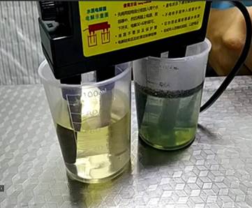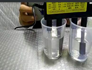最后,祁帅东为我们介绍了水电解质的使用方法。首先要安装好电解设备,将电解两端分别放入装有纯净水和自来水的烧杯中,打开开关,可以观察到装有自来水的烧杯中有气泡产生,水的颜色变绿并有浑浊的沉淀物出现,根据仪器背面贴有的各种颜色所对应的矿物质含量指示牌,可以得出自来水中所含有的矿物质都有哪些,反观纯净水中无明显变化。仪器的使用暂时讲解到这里。