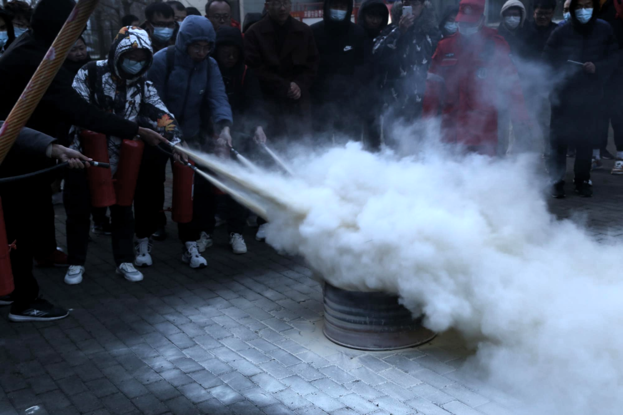 活动中进行了灭火培训及应急疏散演练环节。安全管理处马坤详细讲解了灭火器的使用方法及注意事项,师生们分组进行了实操练习。当消防疏散警报声响起时,同学们迅速用湿毛巾遮住口鼻,在引导下快速有序撤离。