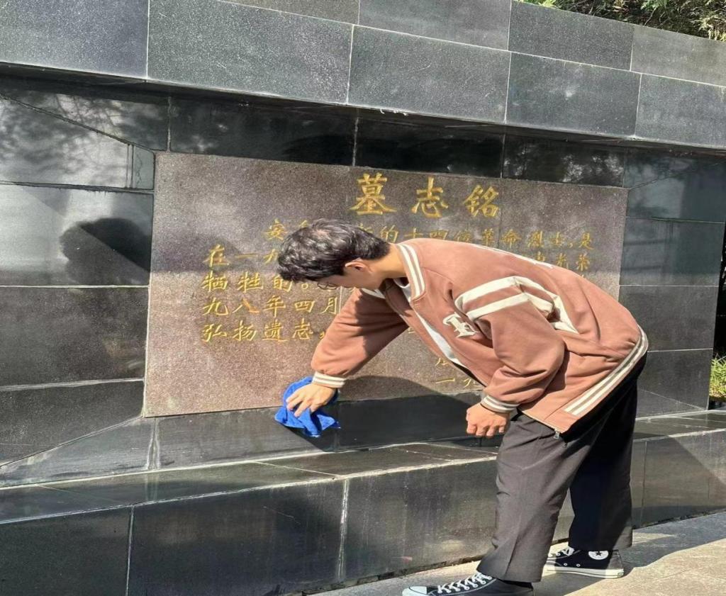 参观结束后,同学们自发清扫陵园落叶,用行动践行誓言。(通讯:肖宜辉 责编:陈冲 审核:许琳)