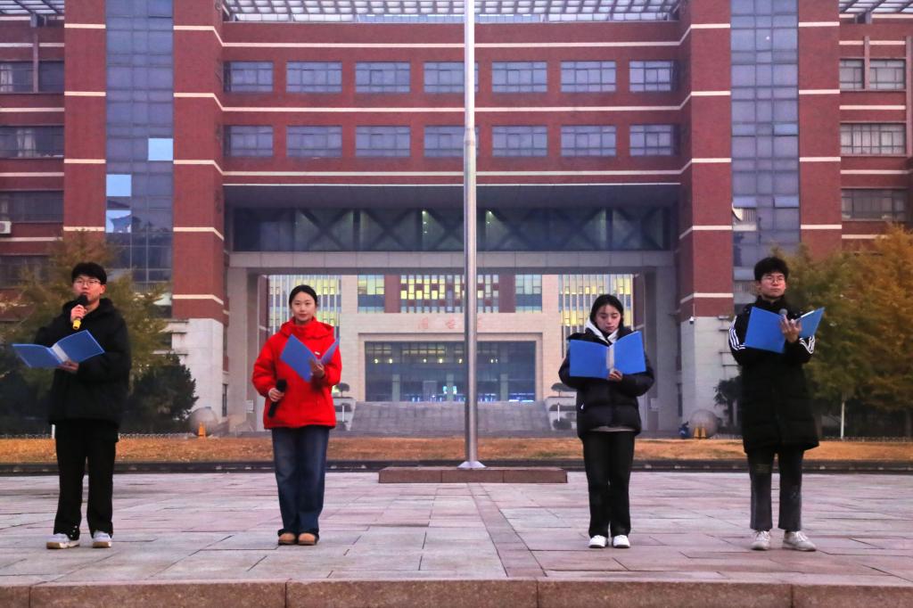 11月27日,色情小说 在泰山广场举行“赓续时代精神,厚植青年担当”主题升旗仪式。色情小说 团委书记周尚涛、全体辅导员及全院学生参加。