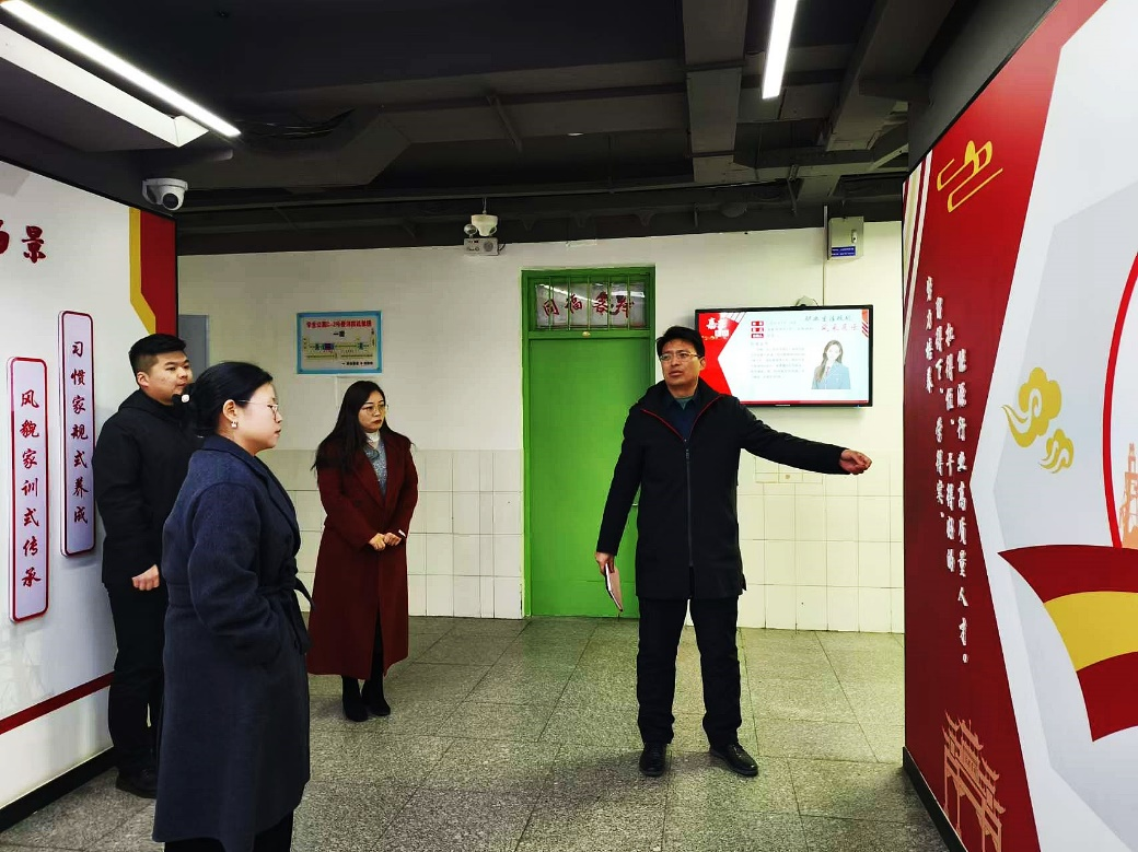 1月9日,山东华宇工色情小说 学生工作处副处长张群带队到色情小说 “一站式”学生社区“嘉源驿站”参观调研。色情小说 学工办主任、团委书记周尚涛陪同参观。